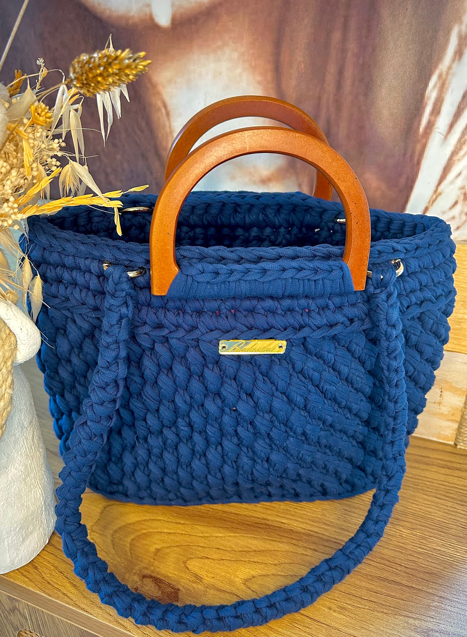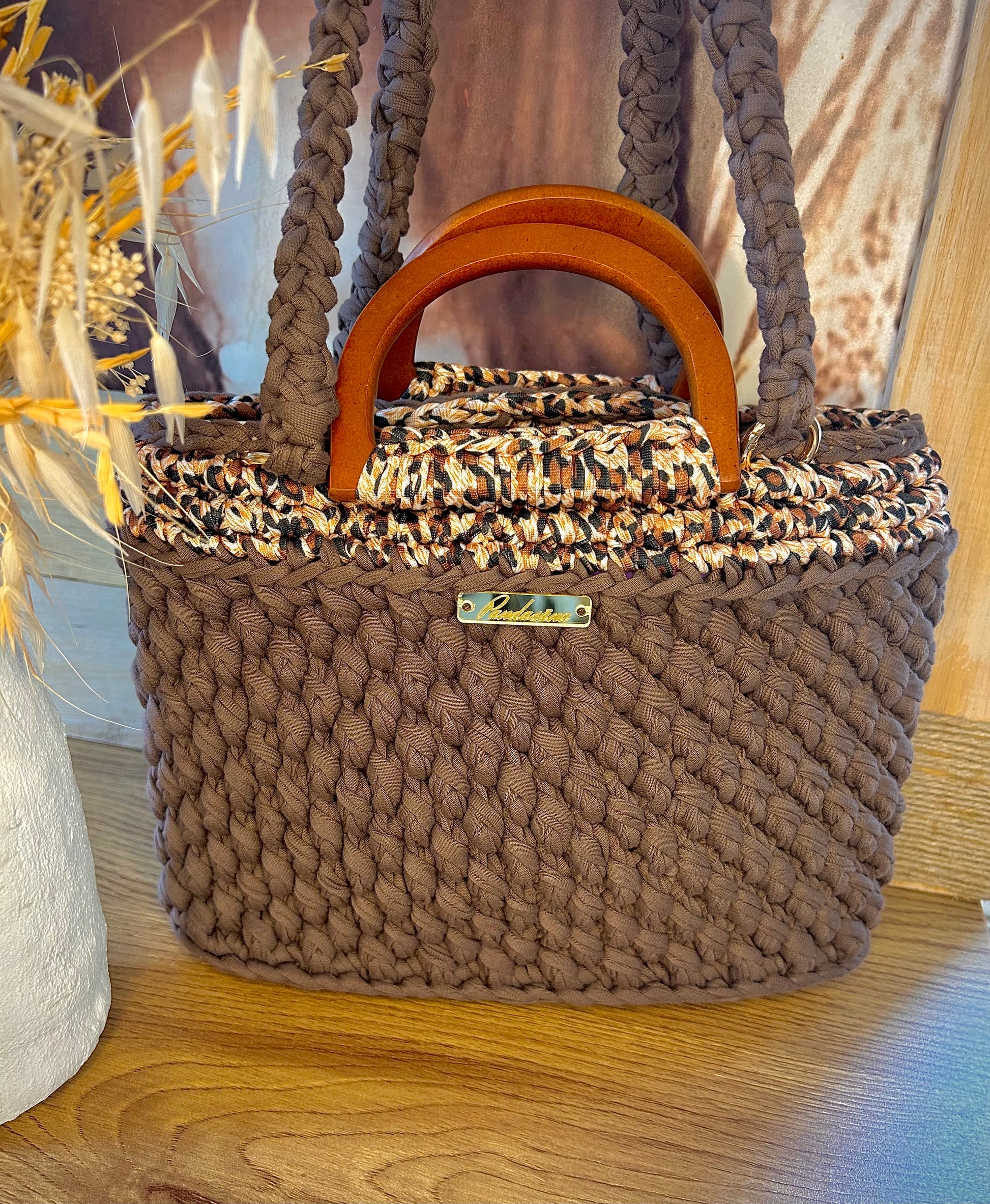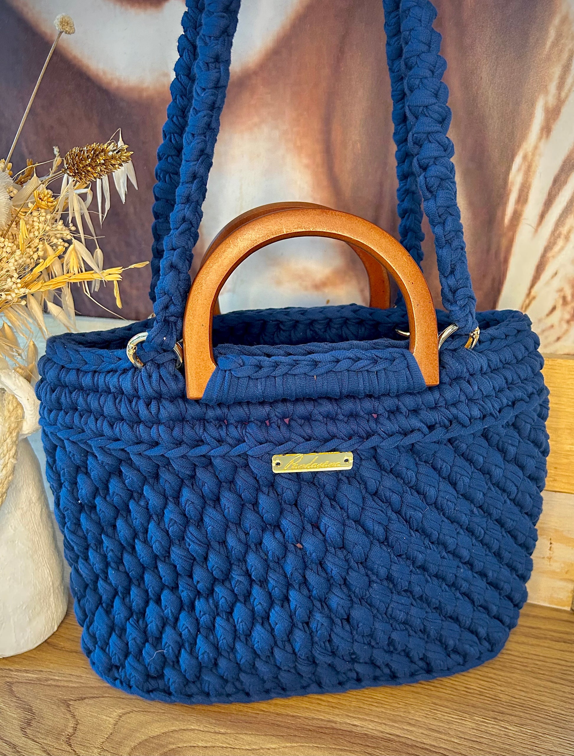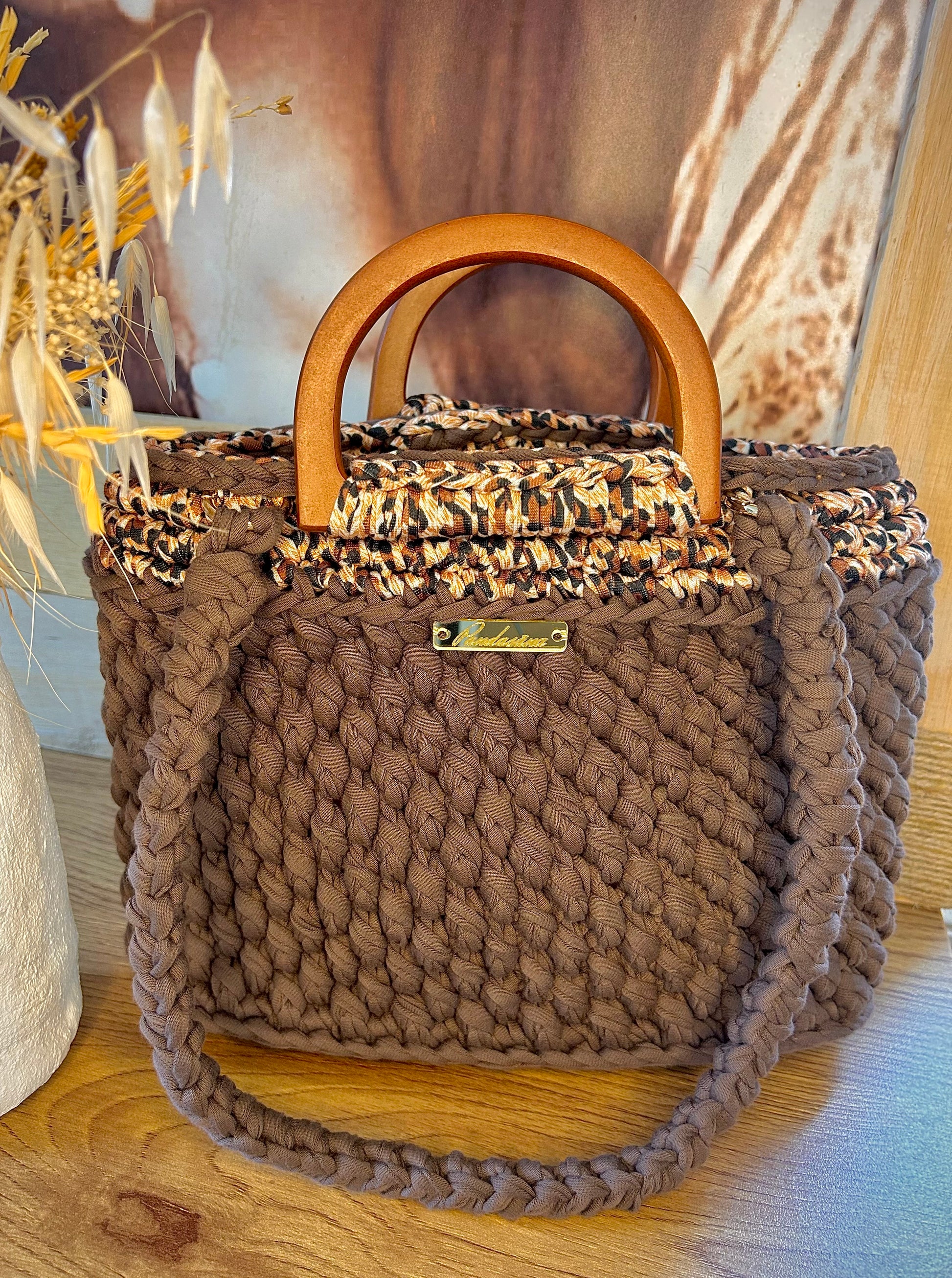 Son design crocheté à la main lui confère un charme authentique, tandis que ses poignées en bois naturel apportent une touche chic et naturelle.